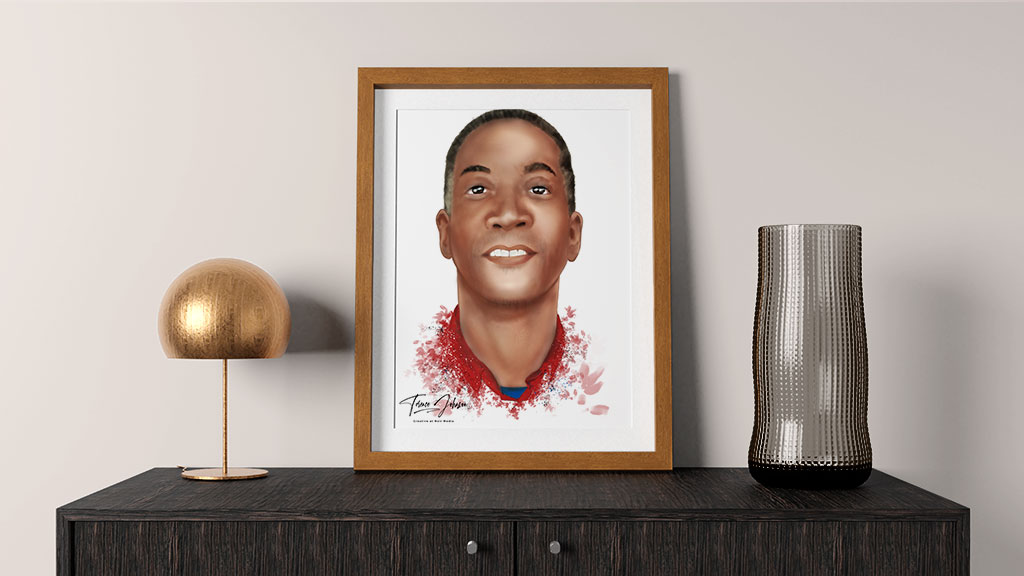 We have commissioned a digital portrait as a birthday gift. We have gone with a clear sharp portrait when a high blend on the skin tones. To enhance that clear sharp look the white background adds to that.