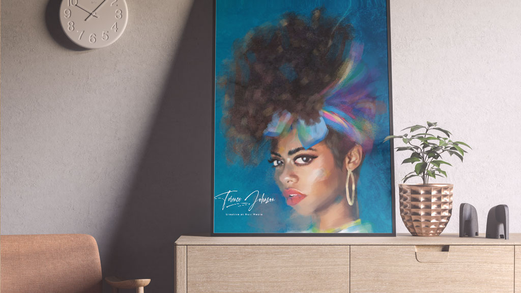 The use of cool soulful colours reflects the soulful music of the artist, adding loose brush strokes adds movement as in her music.